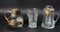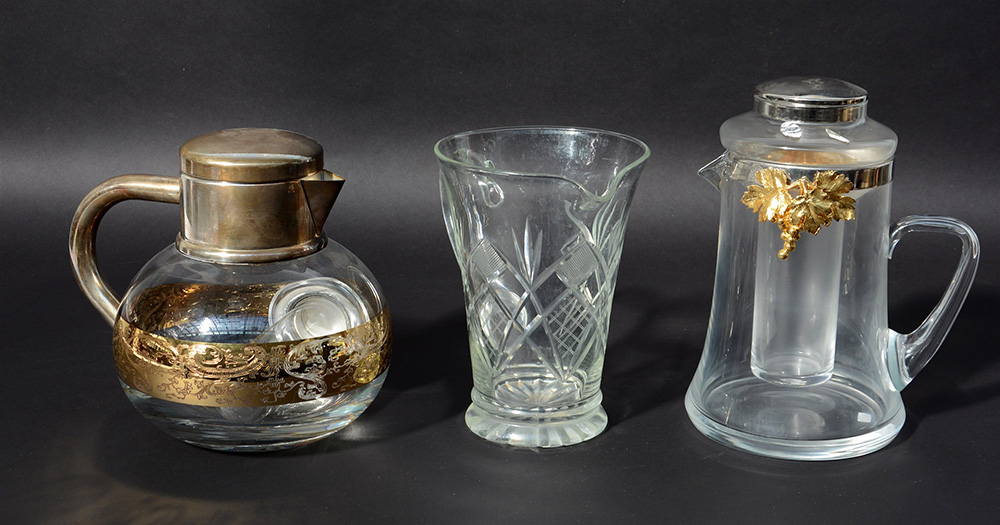 Lotto composto da tre caraffe in cristallo, di cui due con coperchio, con elementi in metallo (lievi difetti)