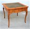 Tavolo da gioco con piano sagomato, lastronato in noce rivestito in marocchino verde impresso in oro, un cassetto nella fascia e gambe mosse (cm 86x74x86) (difetti)