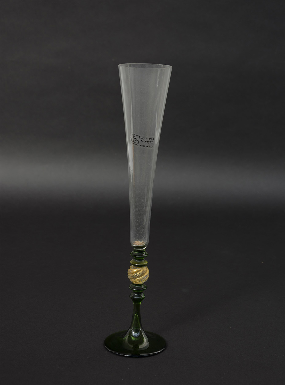 Nason & Moretti Vaso a calice in vetro soffiato verde e oro. Murano, anni...
