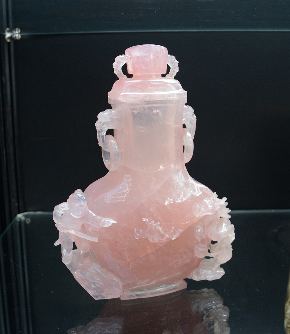 Vaso in quarzo rosa dalla forma arcaica con drago, Cina inizio sec. XX (h cm 28)