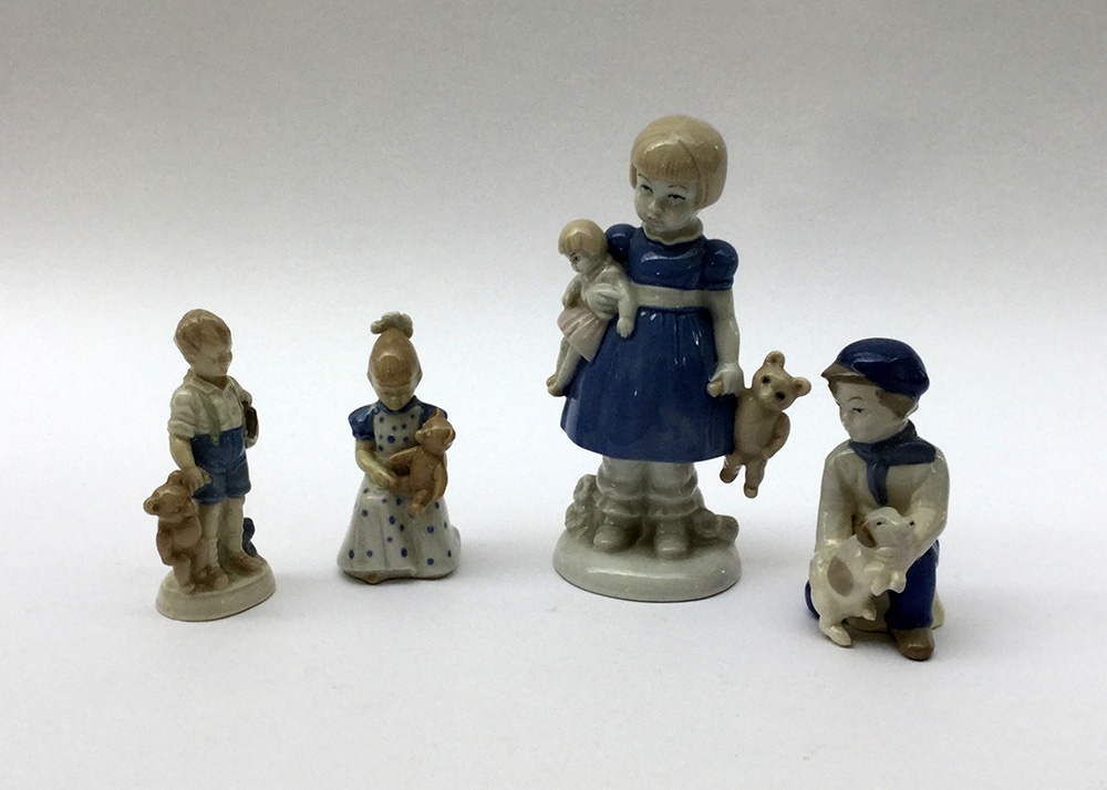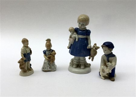 Lotto di quattro statuette in ceramica raffiguranti fanciulli della manifattura Royal Copenaghen