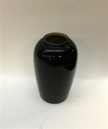 Vaso in vetro incamiciato ametista scuro. Murano, esecuzione recente. Firmato a punta alla base e recante etichetta adesiva.