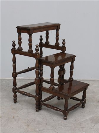 Scaletta da biblioteca in legno dolce con montanti torniti e pioli richiudibili (h cm 79) (difetti)