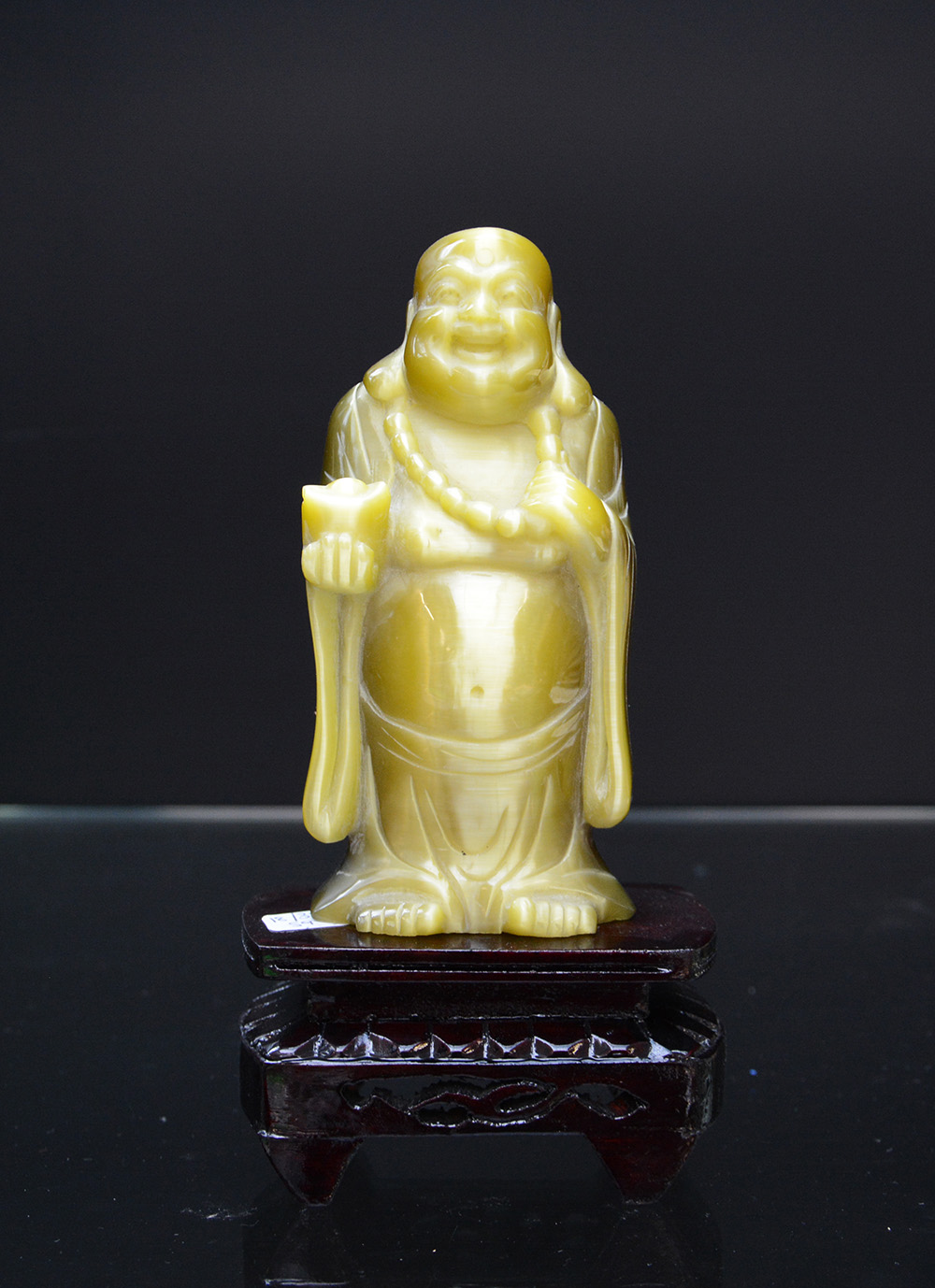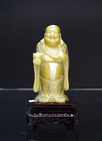 Buddha in occhio di tigre. Cina sec. XX (h cm 14.5) base in legno