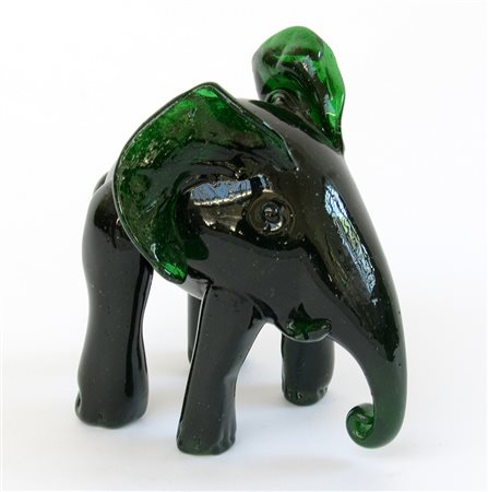 "Elefantino"Manifattura di Murano.Scutura in vetro verde scuro a bolle....