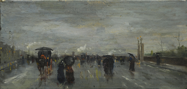 Anonimo del XX sec. Giornata di pioggia Olio su tela, cm. 13x26,5 € 0/0