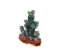 Gruppo scultoreo in pietra dura con vaso dalla forma arcaica e leoni buddhisti, base in legno (difetti)
