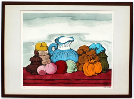 "Natura morta" litografia - prova d'artista (impressione cm 48x58) numerata 4/30, iscritta e firmata in basso a matita. Timbro a secco in basso a destra. In cornice