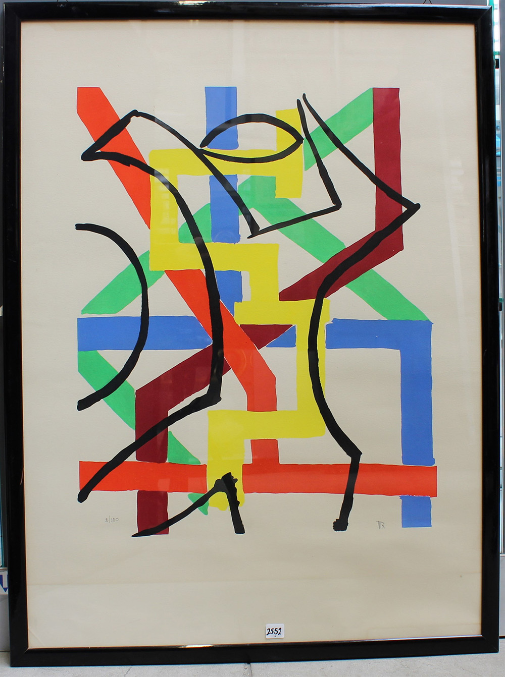 "Pour Eluard" litografia policroma (cm 79,8x58,5) numerata 2/120 e monogrammata in basso a matita. In cornice (difetti)