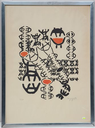 "Senza titolo" litografia a colori (cm 64x46)numerata 34/150 e firmata in basso a matita, in cornice (lievi difetti)