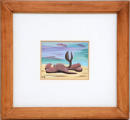 "Senza titolo" 1947, tecnica mista su carta (cm 10,5x13,5) firmata e datata in basso a sinistra, in cornice