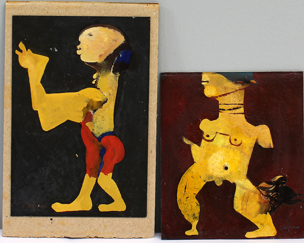 Ignoto, lotto composto da due piccoli olii su cartone raffiguranti figure, entrambi firmati (cm 16x14; cm 19,3x13,2)