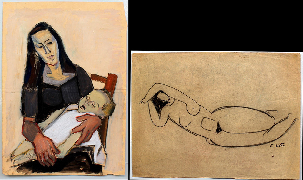 lotto composto da un disegno di nudo firmato (cm 37,5x50) e una tecnica mista su carta raffigurante una donna con bambino (cm 61x43) firmato e datato 1952 in basso a sinistra (difetti)