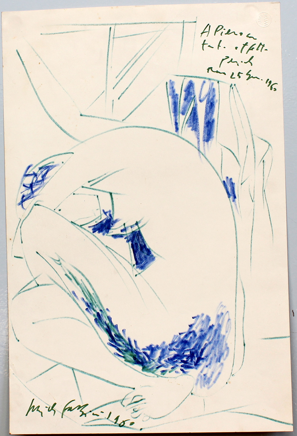 "Senza titolo"1960, pennarelli su carta (cm 50x33) Dedicato, firmato e datato.