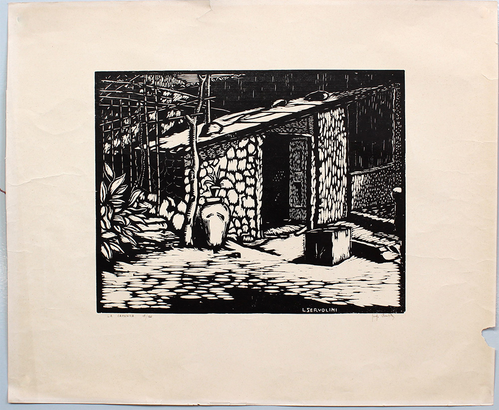 Luigi Servolini (Livorno 1906 - 1981)"La capanna" xilografia (foglio cm...