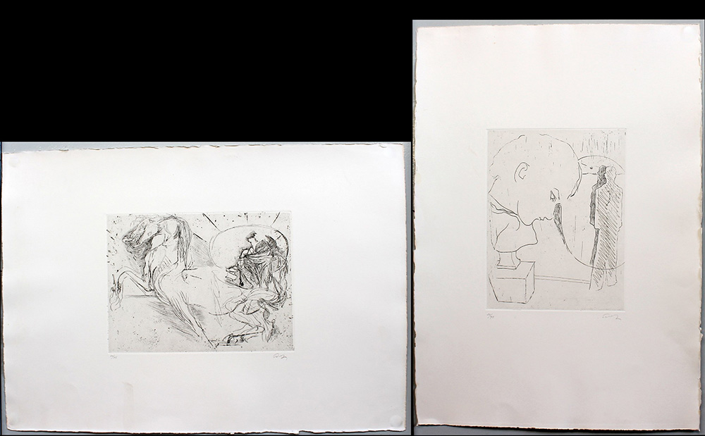 "Ventisei" cartelletta editoriale telata contenente sei acqueforti ritoccate a puntasecca di Augusto Perez ad illustrazione del racconto di Sereni. Edizioni Dell'Aldina, Roma, 1970 (difetti)