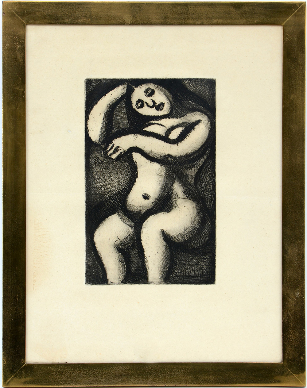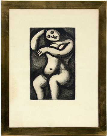 "Nu assis" dalla serie "La réincarnations du Père Ubu" acquaforte (lastra cm 26,5x17; foglio cm 45x34) monogrammata e datata in lastra, in cornice (lievi difetti)