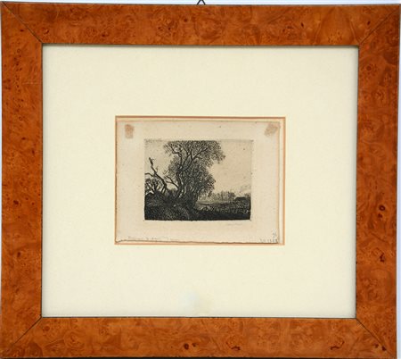 "Barrow Hedges Farm" 1924, acquaforte (lastra cm 7,7x10,3; foglio cm 11,8x16) firmata in basso a destra a matita, titolata in basso a sinistra (lievi difetti)