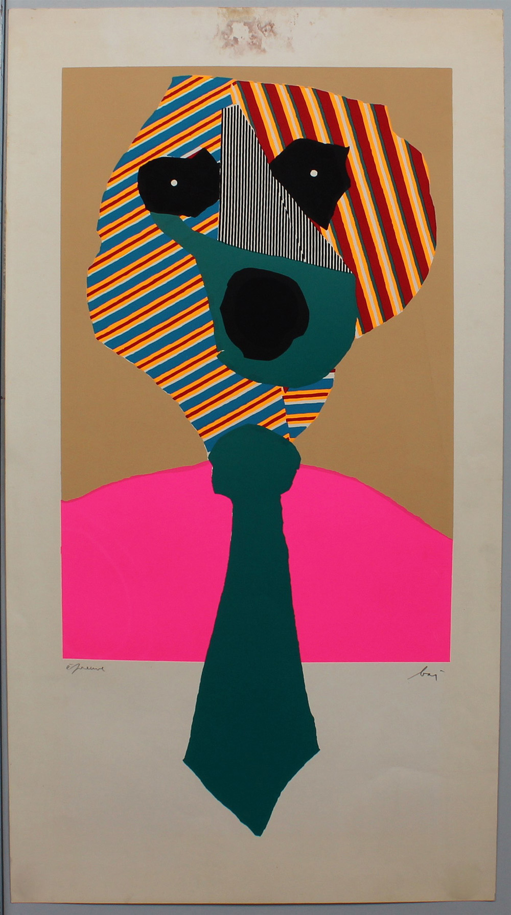 "Uomo con cravatta" 1968, serigrafia a colori (ci)m 92,5x50,8) iscritta e firmata in basso a matita (difetti)