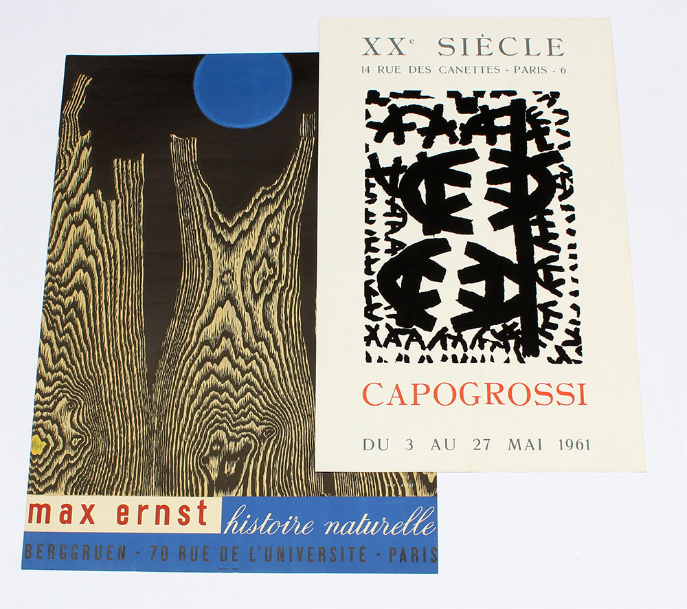 Lotto composto da dieci manifesti espositivi, misure diverse. Tra cui uno della Galleria XX Siècle di Parigi del 1961 su Capogrossi e uno della Galleria Berggruen, Parigi sull'Histoire Naturelle di Max Ernst (lievi difetti)