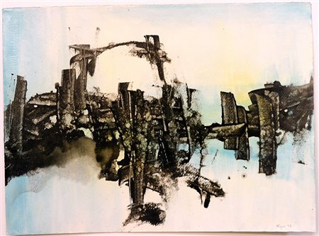 "Senza titolo" 1957, tecnica mista su carta (cm 43,5x59) firmato e datato in basso a destra (lievi difetti)