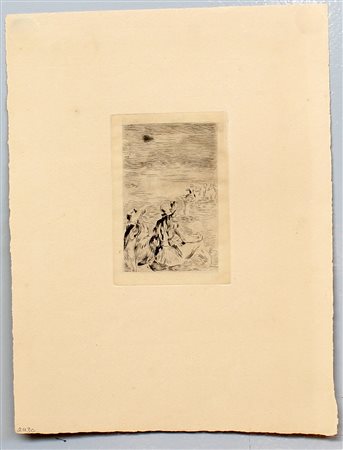 "Sur la plage a Berneval" acquaforte (lastra cm 13,5x9,4; foglio cm 33,5x25,5) firmato in lastra in basso a destra.