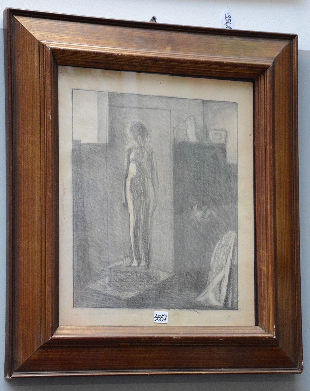 "Nuda in posa" 1913, matita su carta (cm 40x33). Iscritto al retro a matita ed etichetta, entrambe con i dati dell'opera. In cornice (lievi difetti)