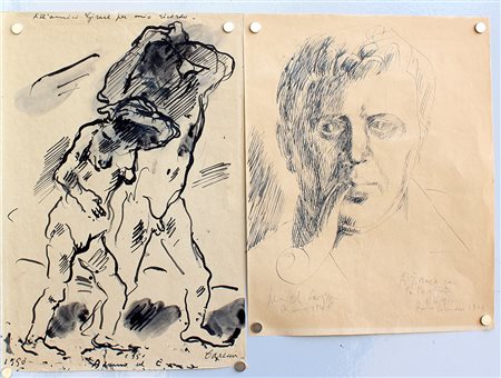 Pericle Fazzini - Felice Carena Lotto composto da due tecniche miste su carta...