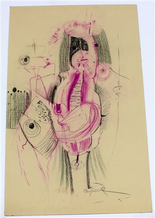 Mario Persico (1930)"Senza titolo" due tecniche miste su carta applicata su...