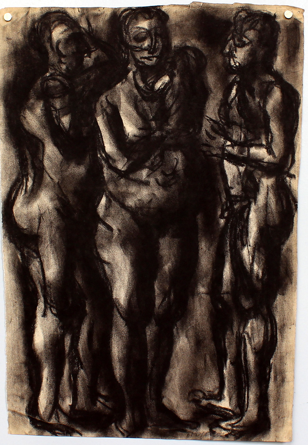 "Figure" carboncino su carta (cm 50x33) firmato in basso a destra (lievi difetti)