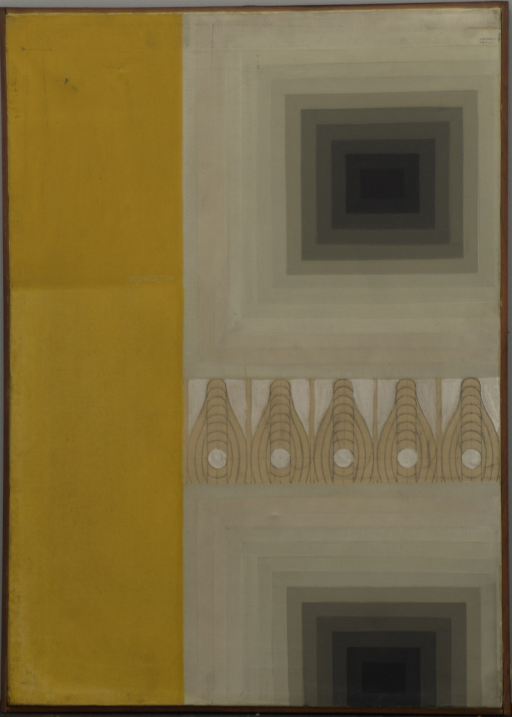 Yutaka Toyota (1931)"Senza titolo" 1966, tecnica mista su tela (cm 70x50)...