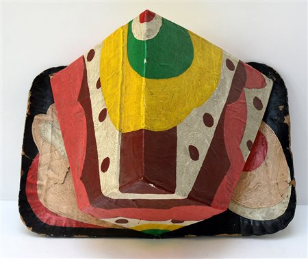 "Senza titolo" 1981, scultura in cartone rivestito e dipinto (cm 52x36x26) firmato e datato sotto la base (difetti e rotture)