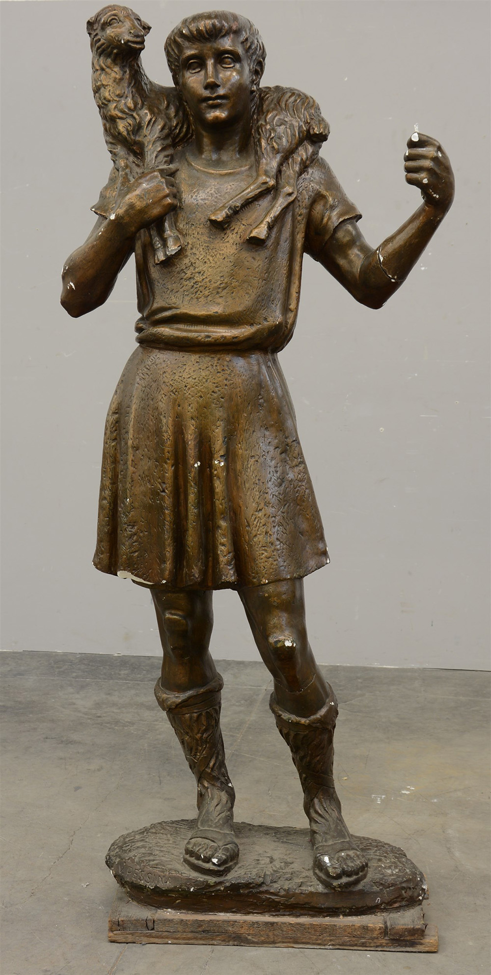 Scultura in gesso patinato raffigurante una figura allegorica (h cm 174)firmata alla base V. Pessina (difetti)