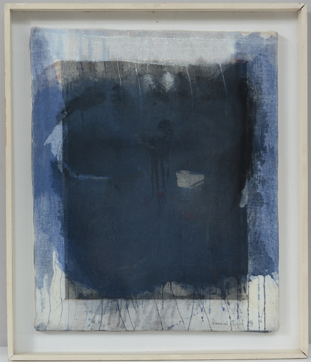 "Senza titolo" 1994, tecnica mista su garza (cm 70x57) firmata e datata in basso a destra, in cornice