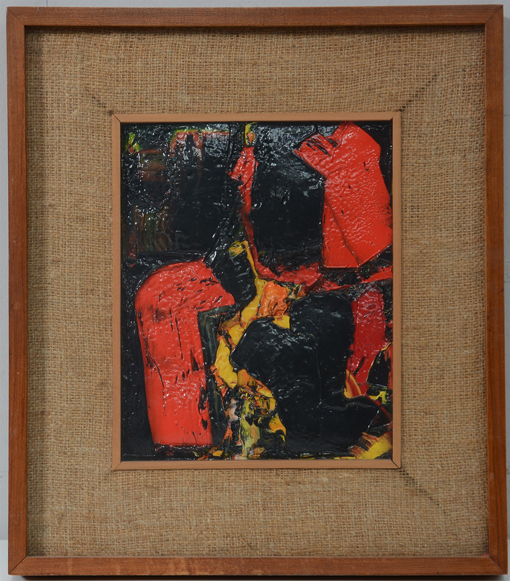 "Opera 49" 1962, olio e tecnica mista su tela (cm 30x24)firmato e datato due volte al retro, in cornice (lievi difetti)