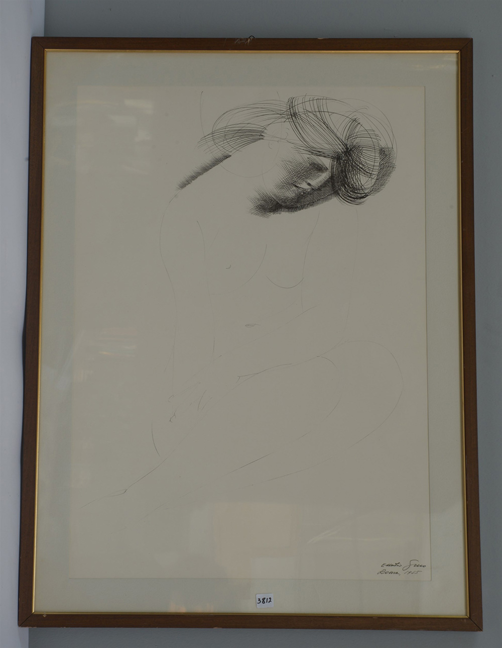 Emilio Greco (1913 - 1995)"Nudo" 1965china e matita su carta (cm...