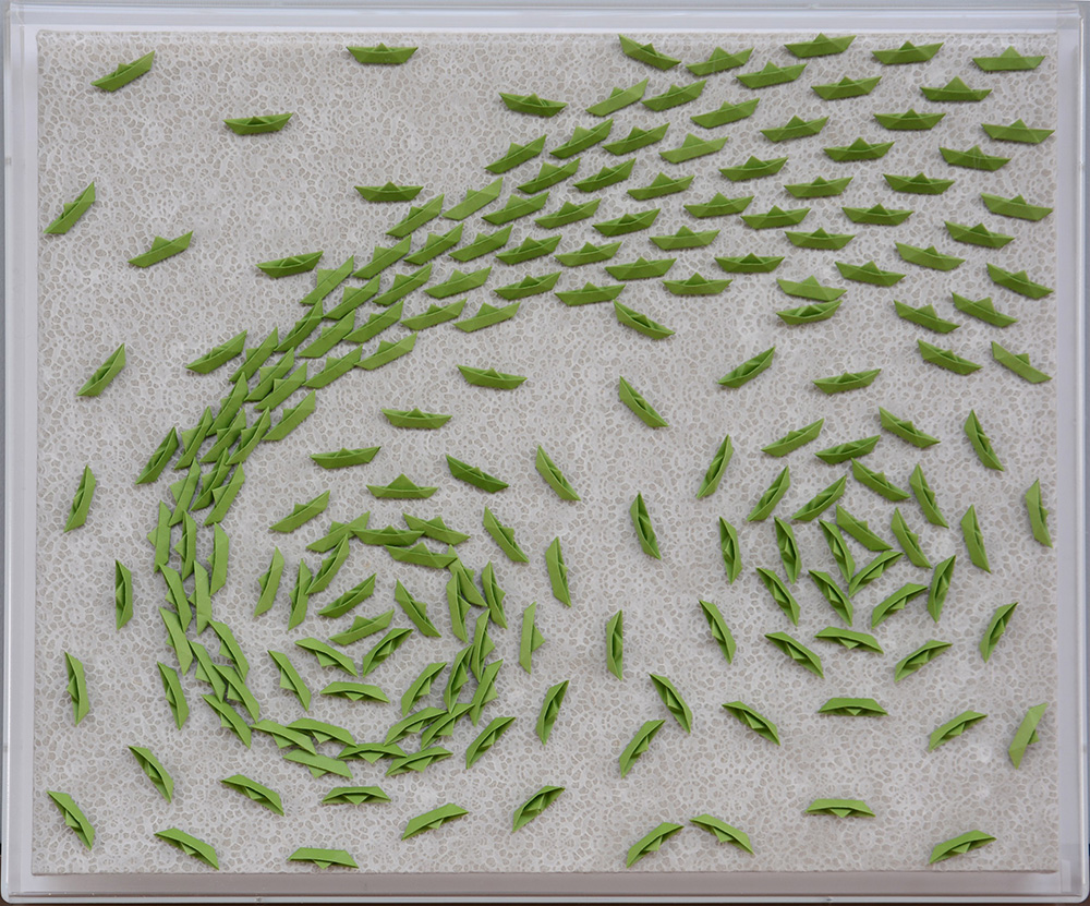 Riccardo Gusmaroli (Verona 1963)"Vortice verde" 2015 barche di carte su tela...