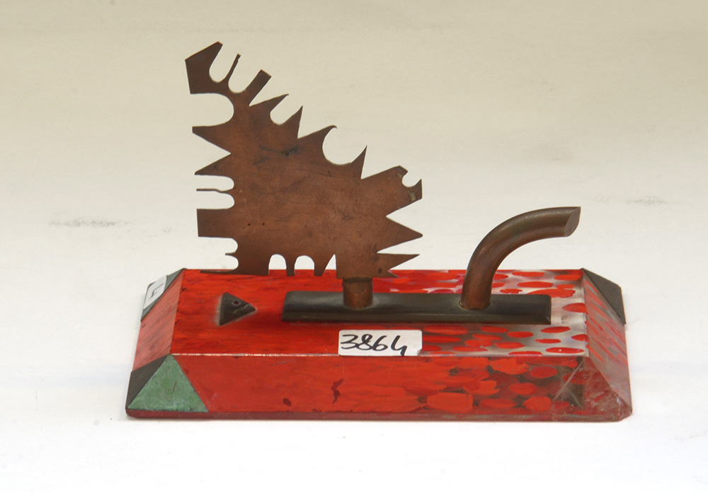 "Libero navigando" scultura in vetro e rame dipinto, firmato e dedicato sotto la base (difetti)