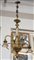 Manifattura di Murano, lampada a quattro luci in vetro soffiato con portalampada a campanula e elementi decorativi a forma foglia, (lievi difetti)