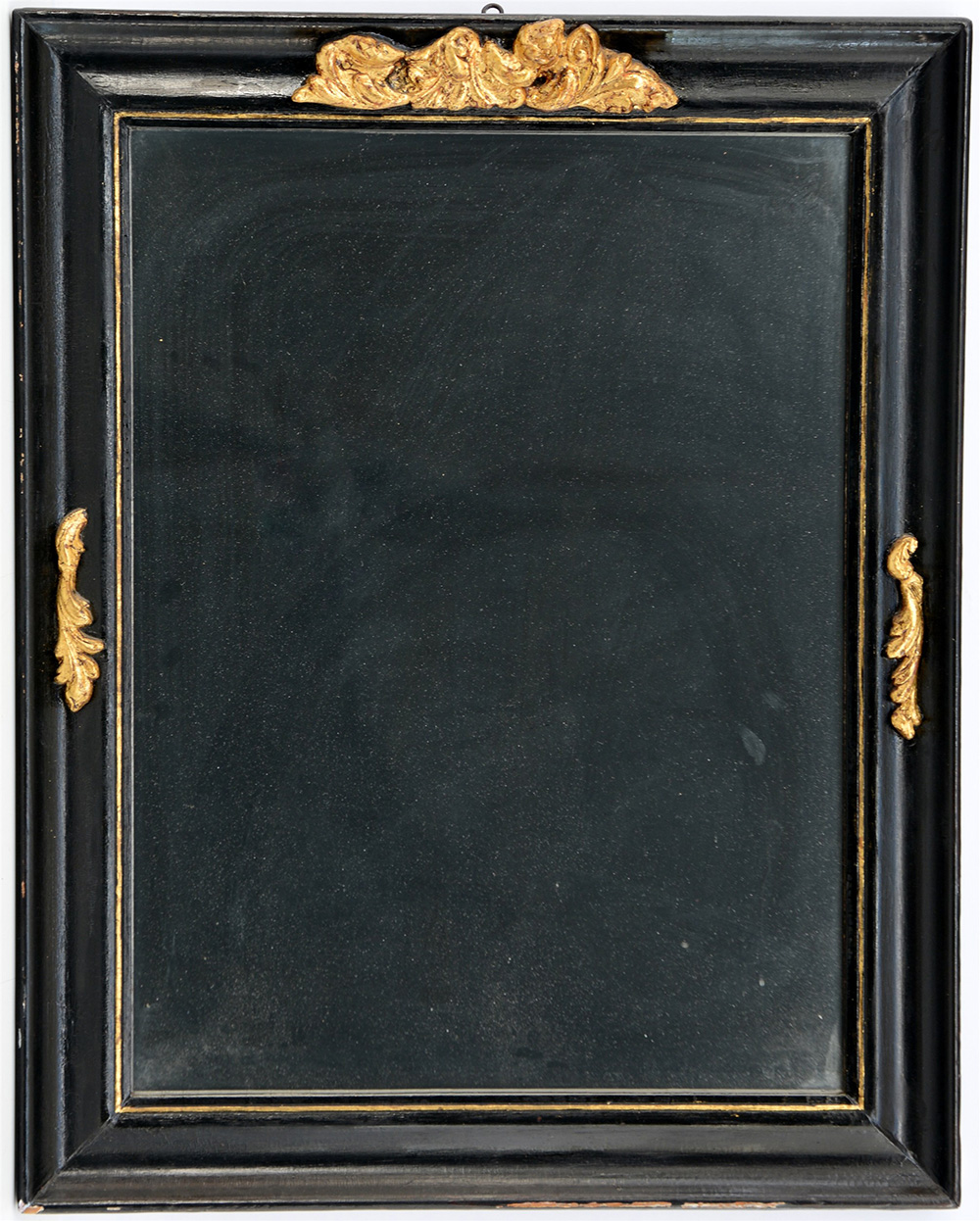 Specchiera con cornice in legno ebanizzato con fregi dorati (cm 72x57) (difetti)