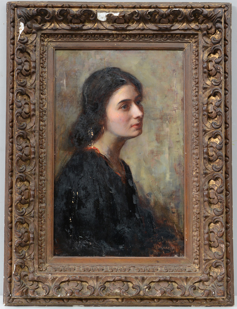 "Autoritratto" olio su tela (cm 68x44) firmato Clara Müller Monaco 1905 in basso a destra, in cornice (difetti e mancanze)