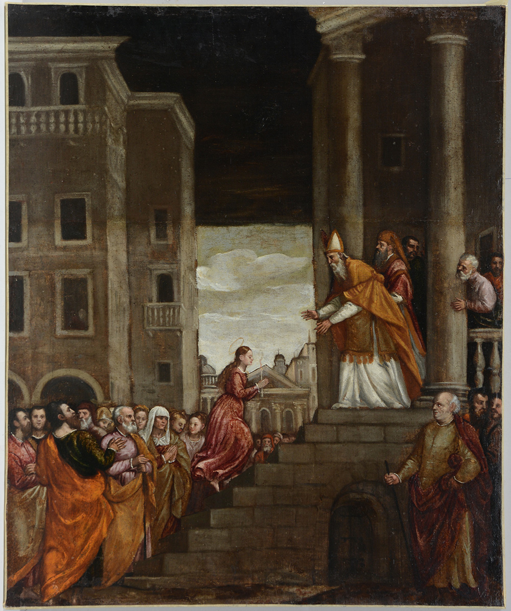 Ignoto, "Presentazione della Vergine al tempio" olio su tela (cm 90x74,5)(difetti e restauri)