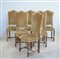 Gruppo di sei antiche sedie imbottite con gambe tornite a rocchetto,...