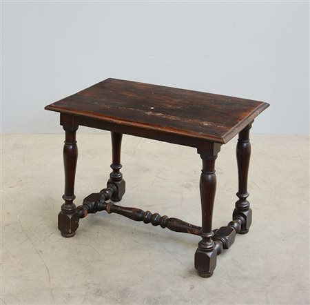 Tavolino da salotto rinascimentale con gambe a rocchetto (cm 70x54x45)(difetti)