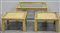 Trittico di tavolini in legno marmorizzato, due quadrati e uno rettangolare...