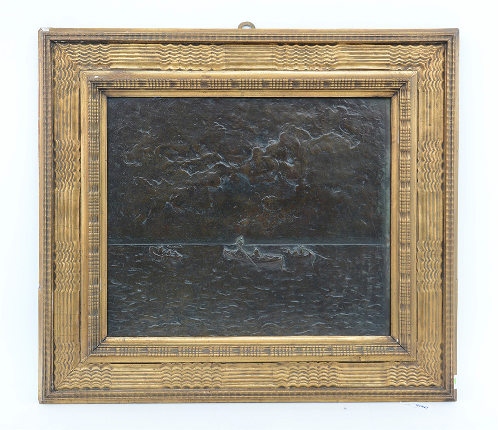 Bassorilievo in bronzo raffigurante "Marina con barche" (cm 40x47) In cornice