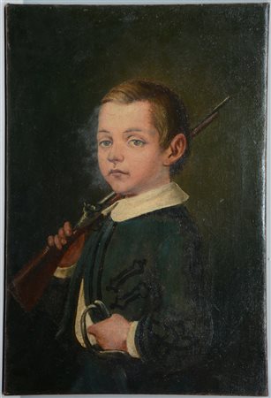 Ignoto "Bimbo con fucile" olio su tela (cm 45.5x31)