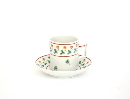 Tazzina da caffè con piattino in porcellana, secolo XIX. La tazzina ‘litron’...