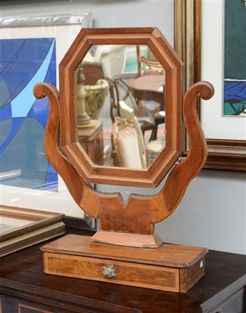 Psiche da tavolo con specchio ottagonale basculante e cassettino alla base...