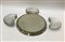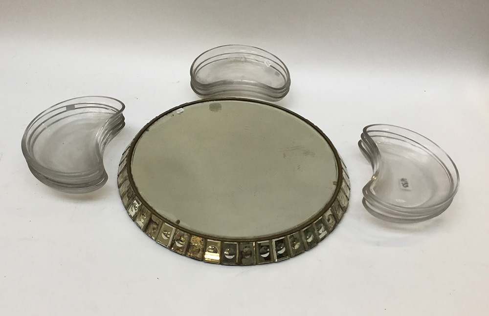 Lotto composto da un centratovola a specchio e sei antipastiere in vetro (difetti)